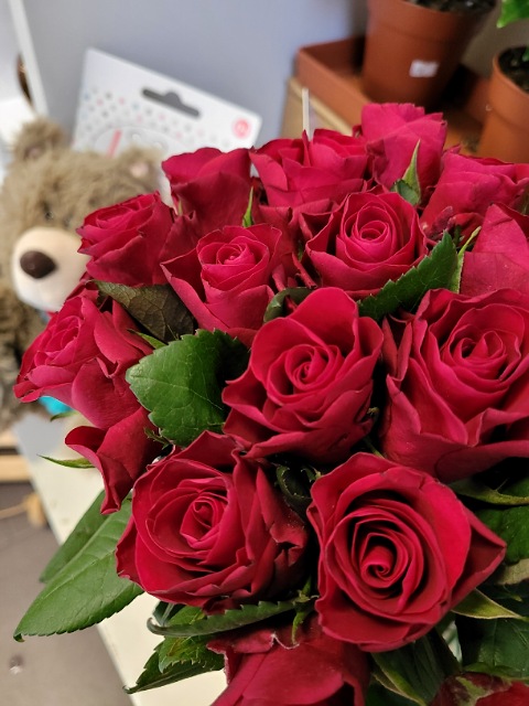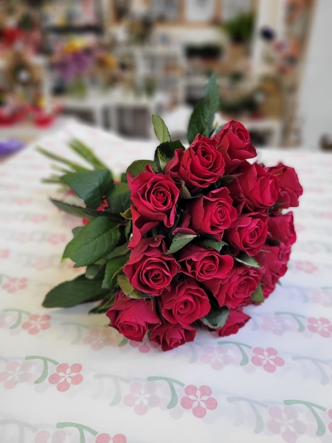 Dvacet čerstvých červených růží délky 40cm, svázaných stuhou v barvě květů. Pošlete překvapení plné lásky až domů nebo do práce. Rozvoz růží Ostrava.