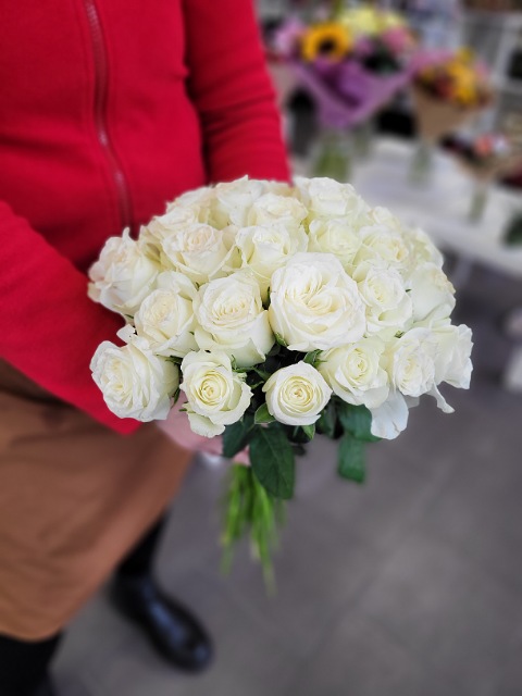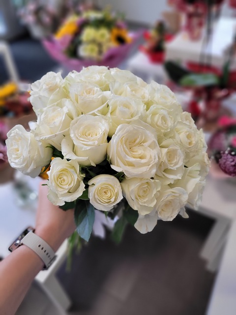 Kytice 30-ti bílých růží délky 40 cm je elegantní, čistá a působí výjimečně jemně. Bílé růže jsou oblíbenou volbou jako poděkování, přátelské gesto nebo jako milý dárek „jen tak“. Díky své jednoduché a přitom výrazné kráse potěší každého, kdo preferuje decentní a stylové květiny.