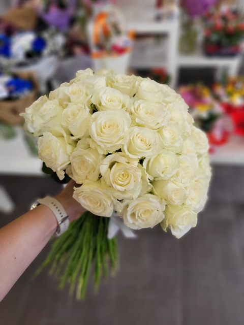 Kytice 80-ti bílých růží délky 40 cm je elegantní, čistá a působí výjimečně jemně. Bílé růže jsou oblíbenou volbou jako poděkování, přátelské gesto nebo jako milý dárek „jen tak“. Díky své jednoduché a přitom výrazné kráse potěší každého, kdo preferuje decentní a stylové květiny.