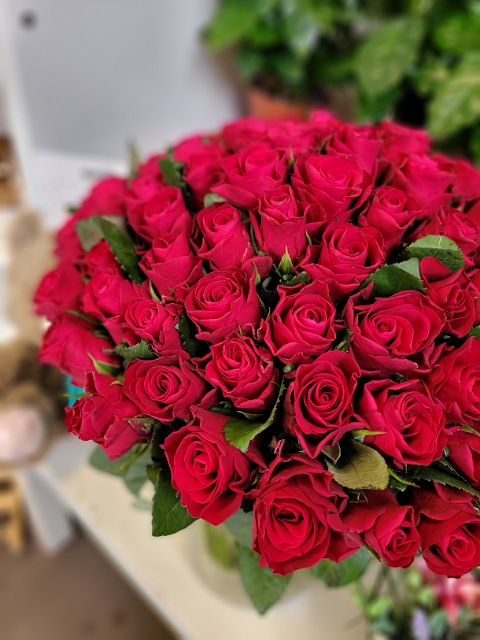 80 červených růží 40cm
