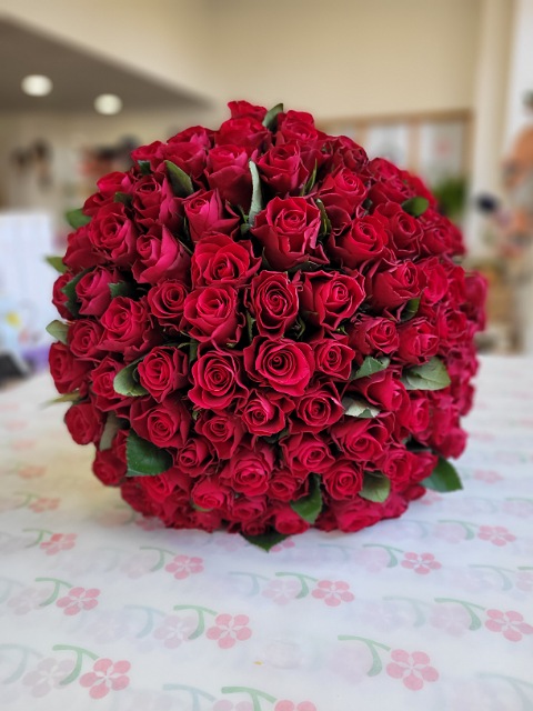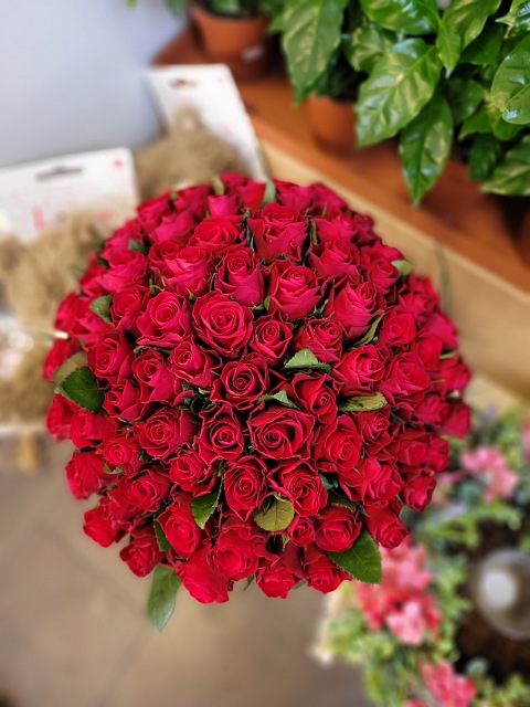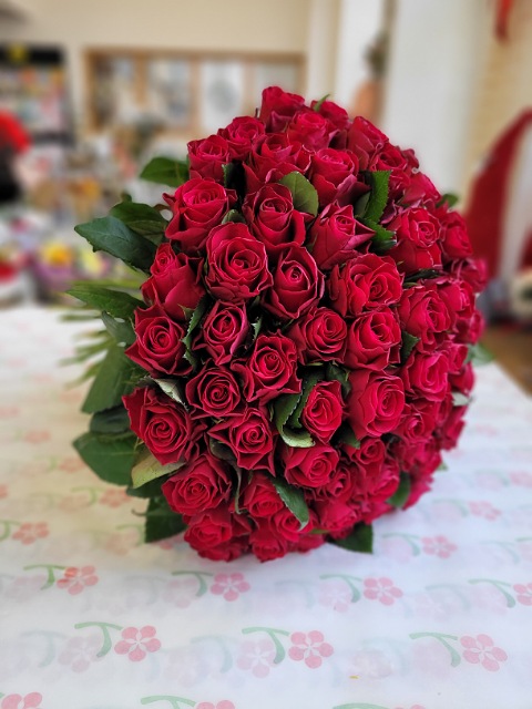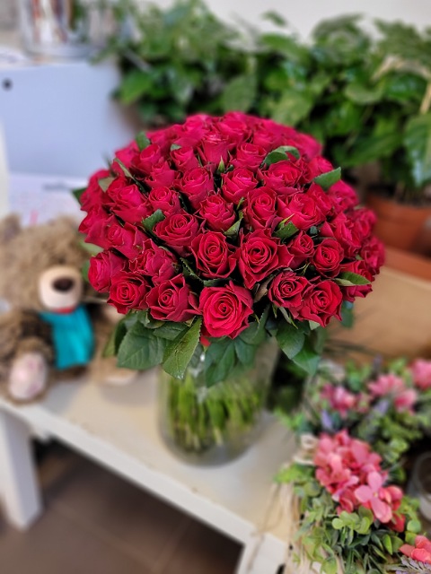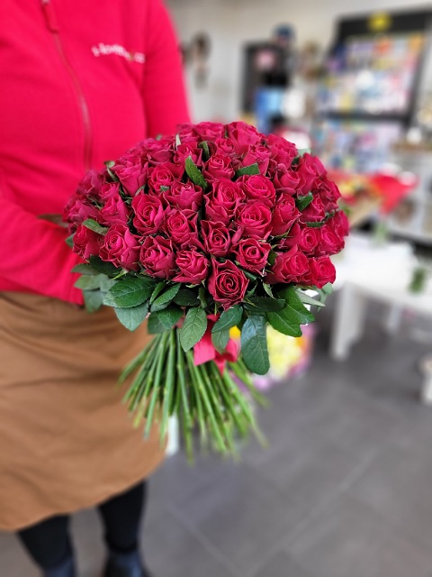 90 červených růží 40cm