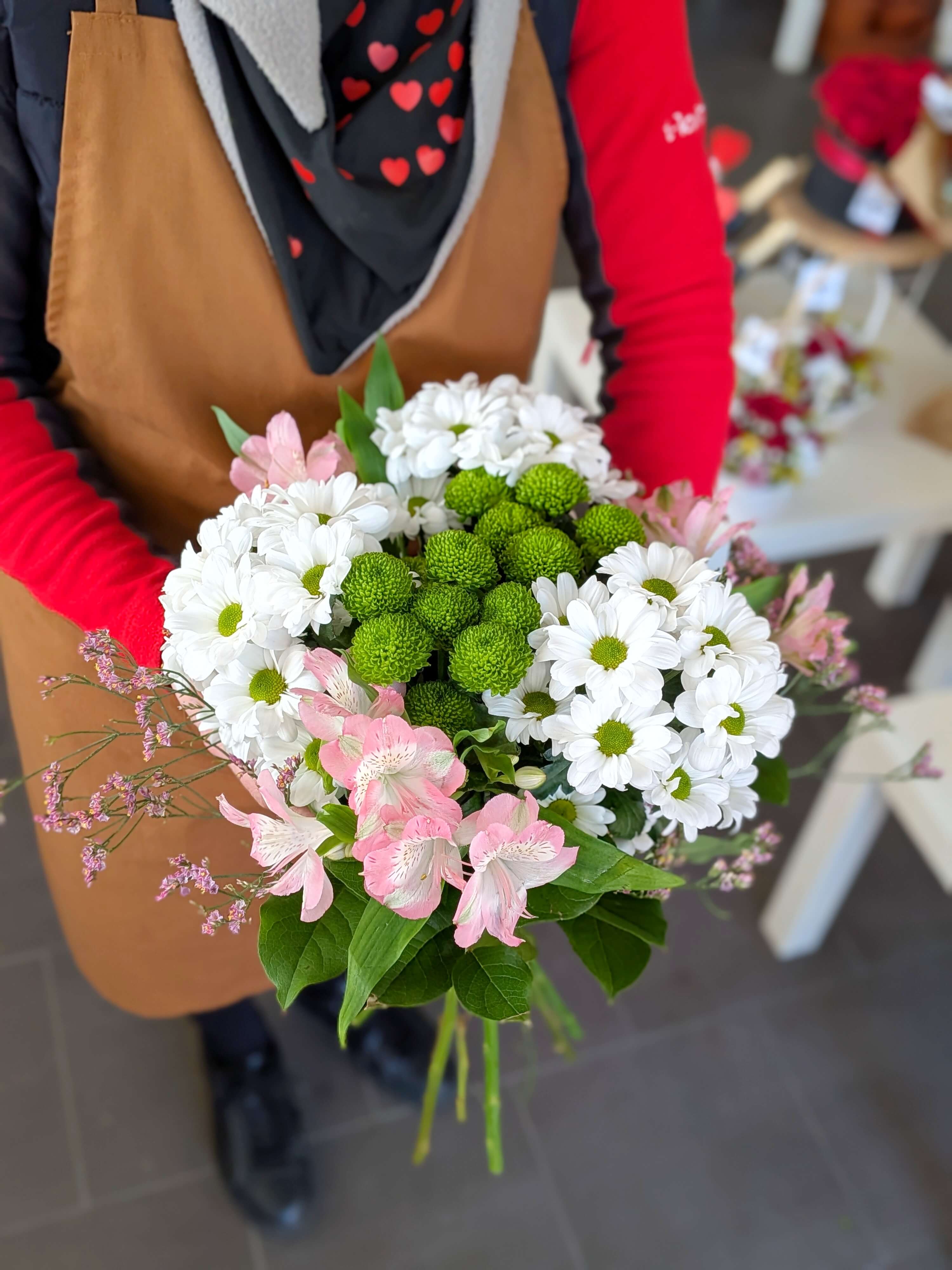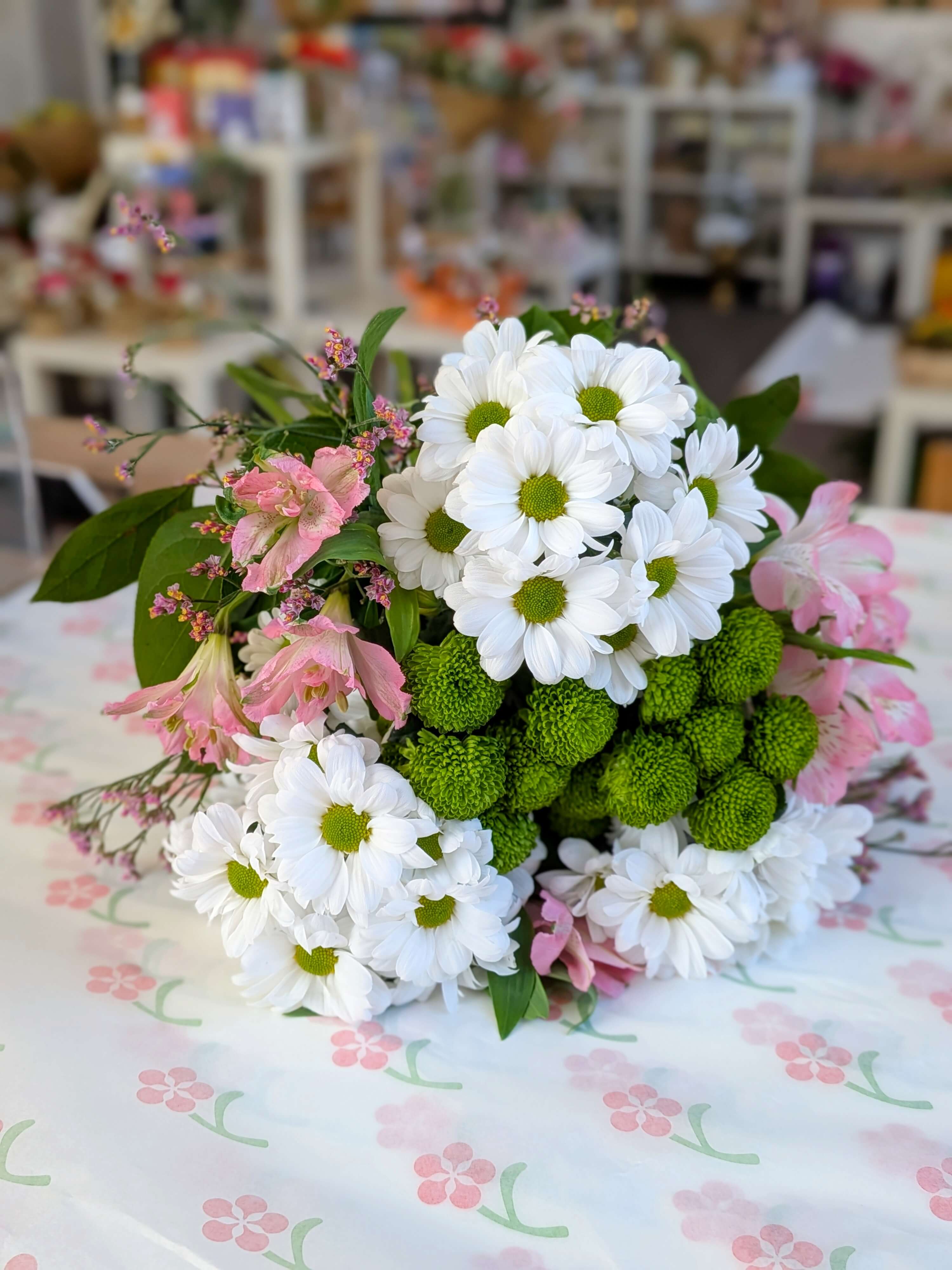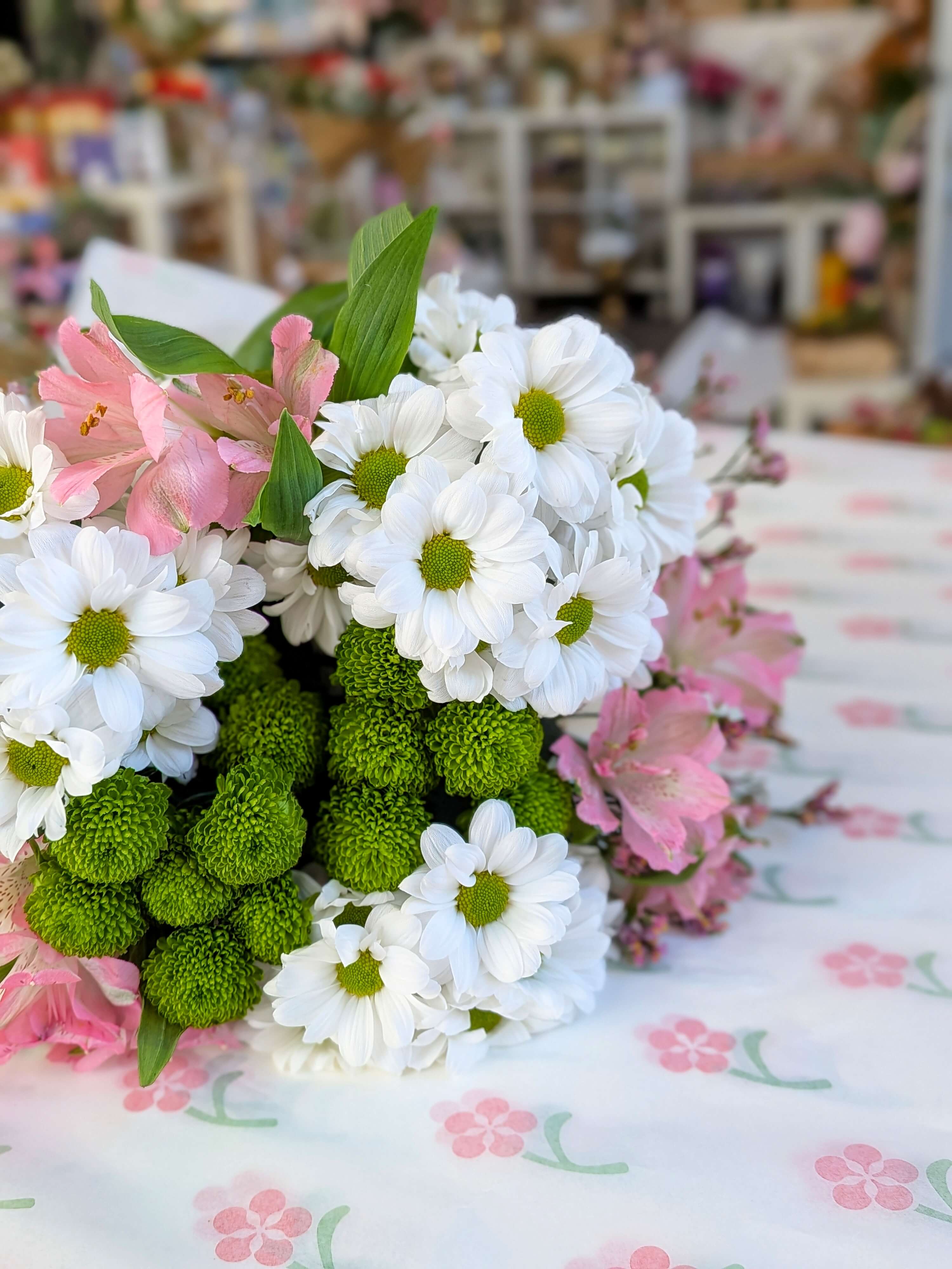 Růžové alstromerie a bílé kopretiny