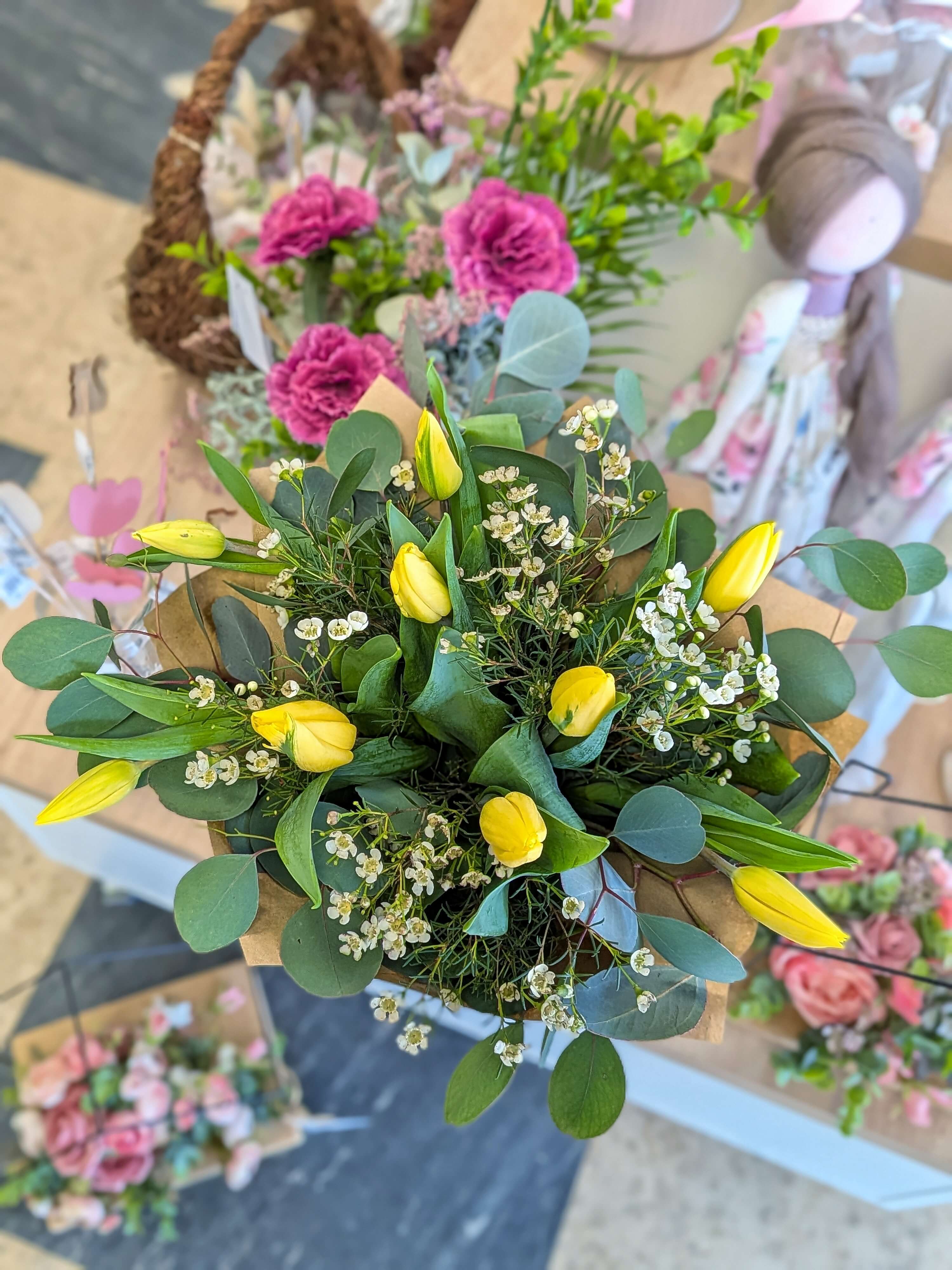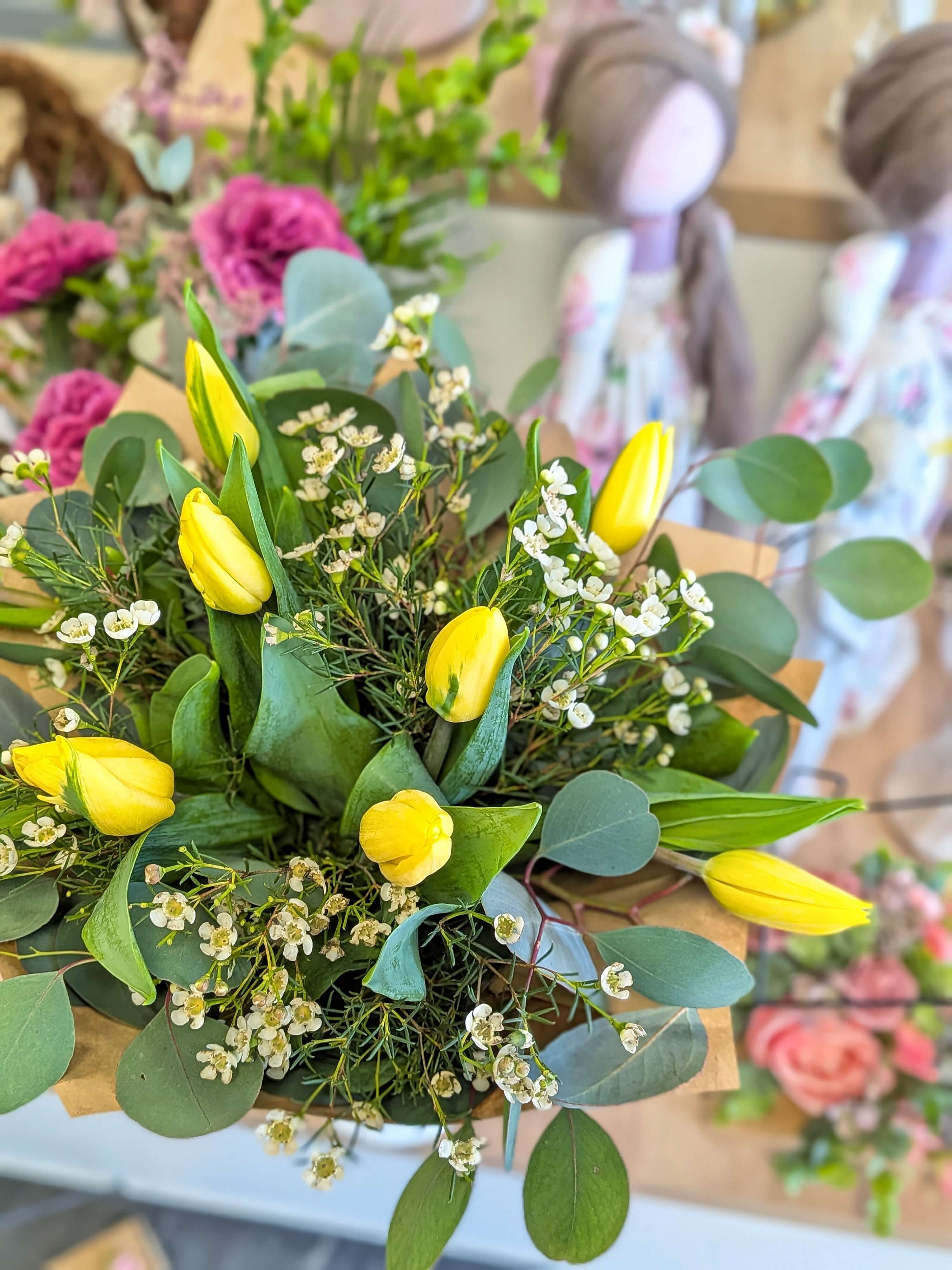 Tulipány, wax, eukalyptus